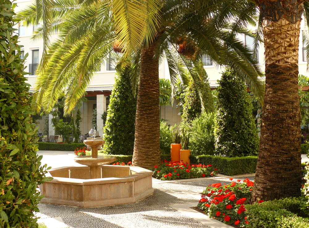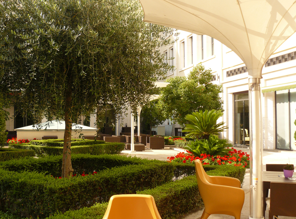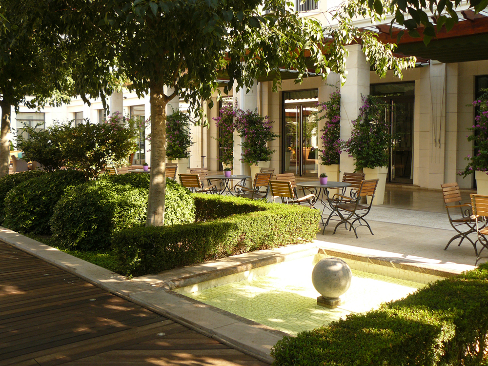 El lujoso jardín del Hotel Westin Valencia, diseñado sobre una losa de hormigón inspirado en los clásicos jardines valencianos